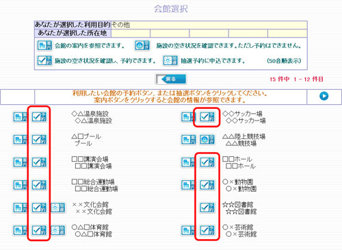 メニュー画面 > 所在地選択画面 > 会館選択画面